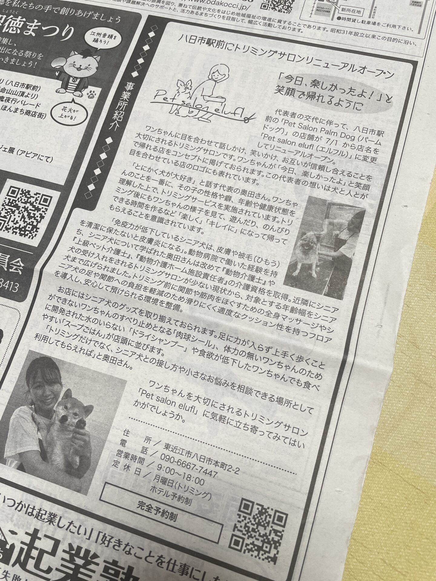 7月1日の報知新聞にペットサロンエルフルを掲載して頂きました